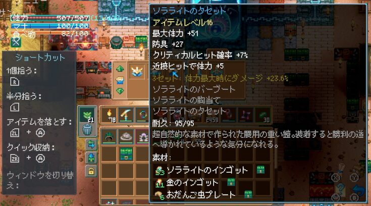 マイクラの見下ろし2D版にRPG要素が強めに入れ込んだ作品です。