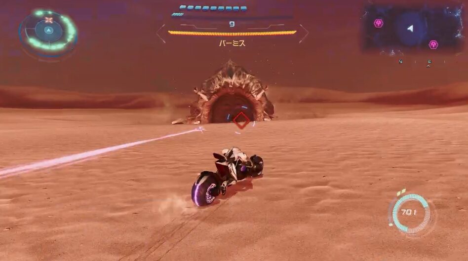 ロックオンはボスの中心がターゲットとなるので、そこからスティックを微調整して照準をズラす必要がある。