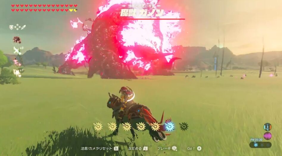 ハイラル城の中に祠があるので、そこ中継地点として良いと思った。 ボスは城の中で厄災ガノンと戦い、その後フィールドで魔獣ガノンと戦う2段階ある。
