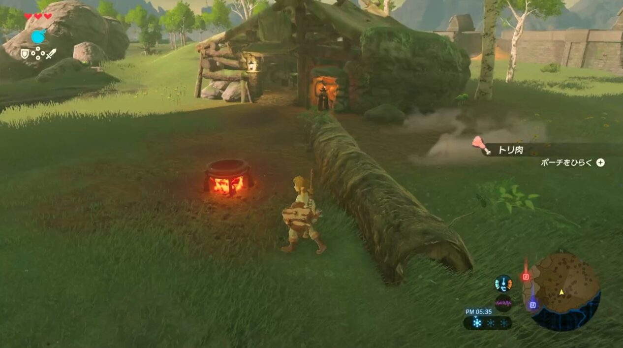 - トリ肉 or ケモノ肉(老人の小屋の近くに鳥がいるので弓矢で倒す)