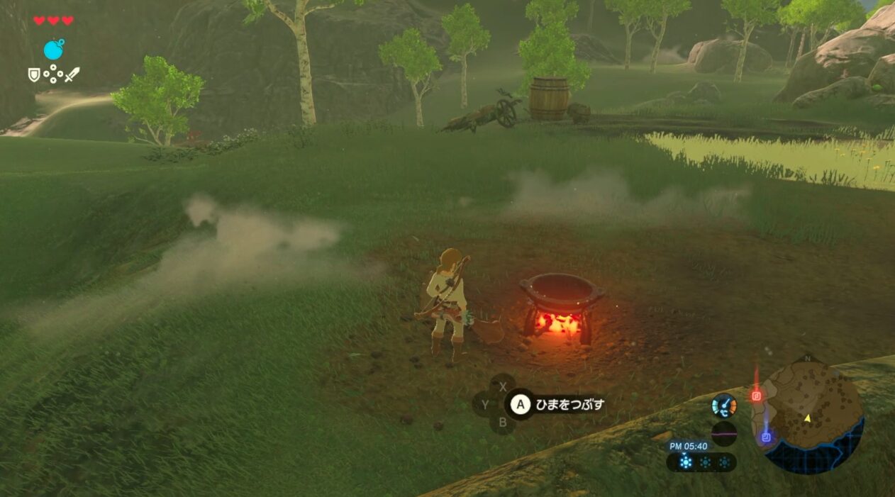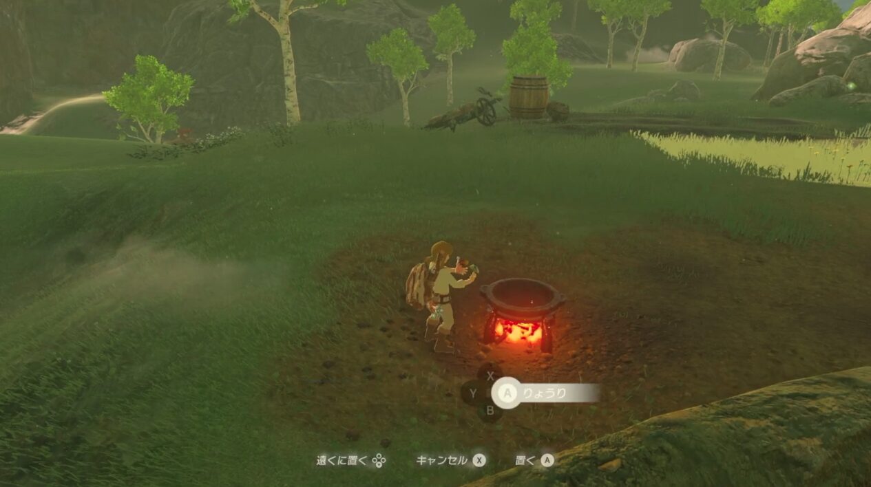 祠攻略後、近くの湖でハイラルバスをゲットしておく。