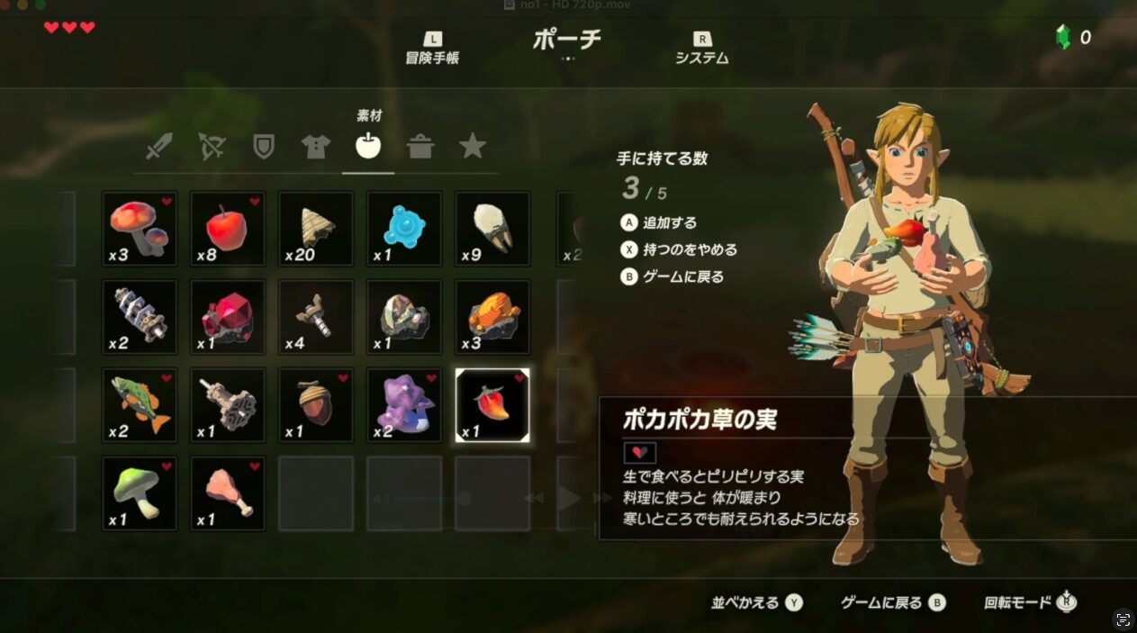 りんごやきのこなどの食べ物は、回復アイテムとなるので、意識して取っておく