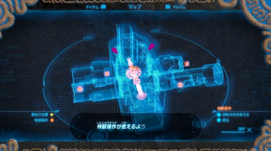 ハイラルマップ表示があり、ハイラル中にあるほとんどのオブジェクトの配置位置が確認できる。