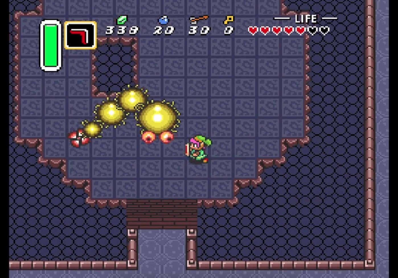 撃破すると、闇の世界のピラミッドの上に飛ばされる。