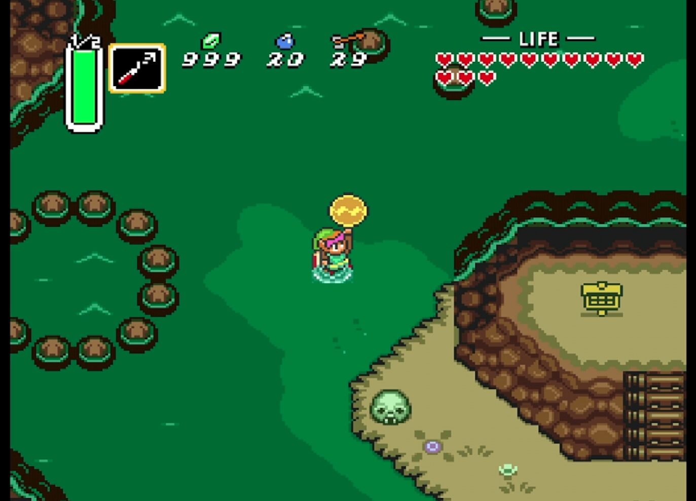 村の少年が長老の場所を教えてくれるので、サハスラーラに会いに行き、マスターソードを取得するには3つの紋章が必要という情報を得る。
