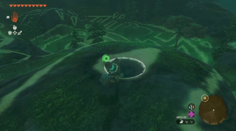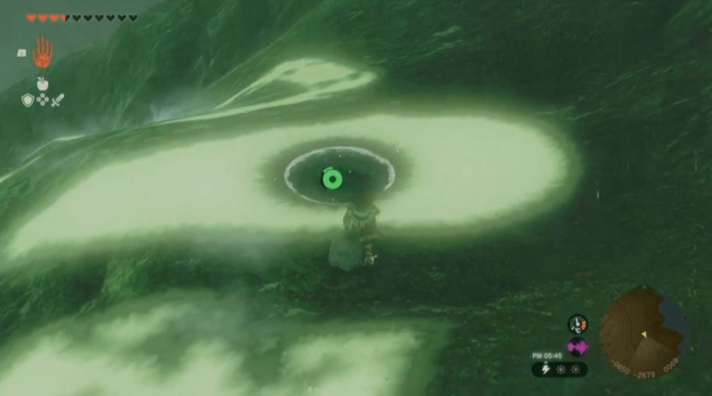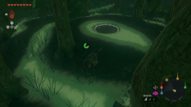 ウコウホの祠(天に向ってうずまく緑色の光が発生している場所)へ向かう