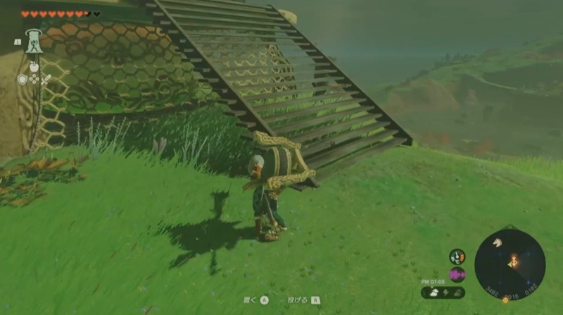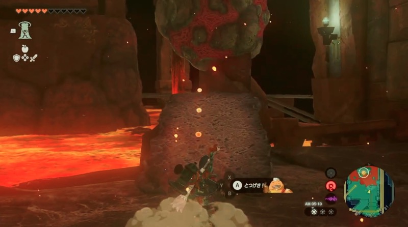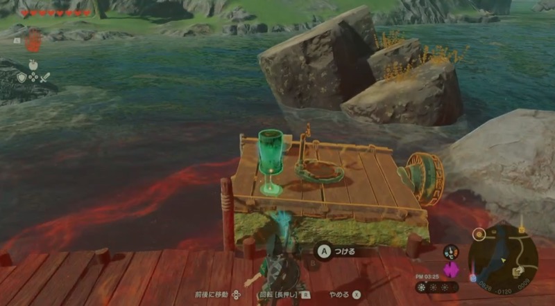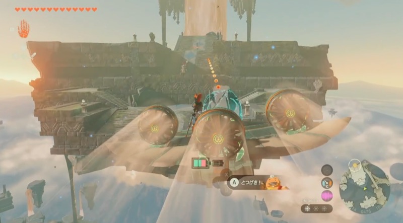 近くのブロックにロケットを付けて上昇し、鳥望台の蓋にのり、ブロックをウルトラハンドで移動する。