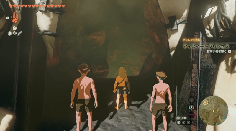 ゼルダの指示を受けて、パンツ一丁の男たちがその状態で、魔物の巣穴に調査に向かったとのこと。