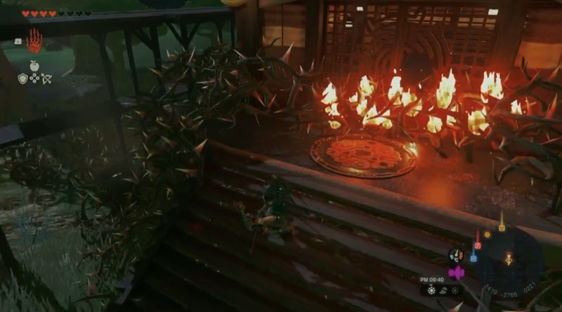 火でトゲを燃やして扉を開ける。