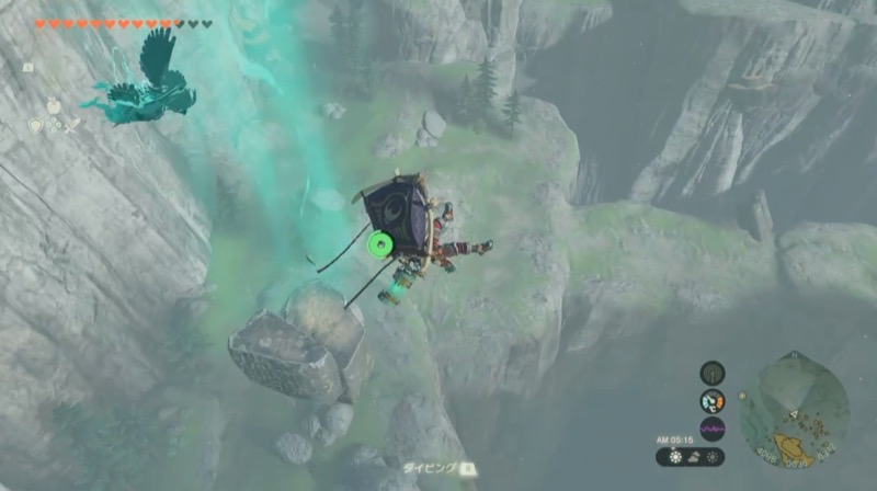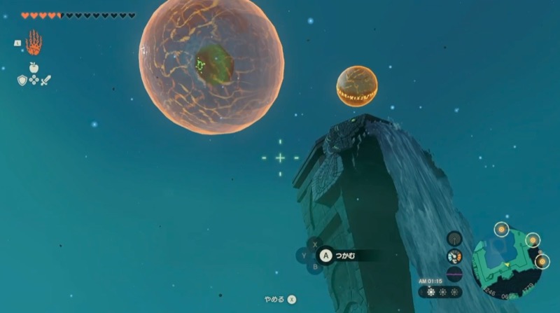 近くに空から降ってくる岩があると思うので、モドレコを使い空に移動。